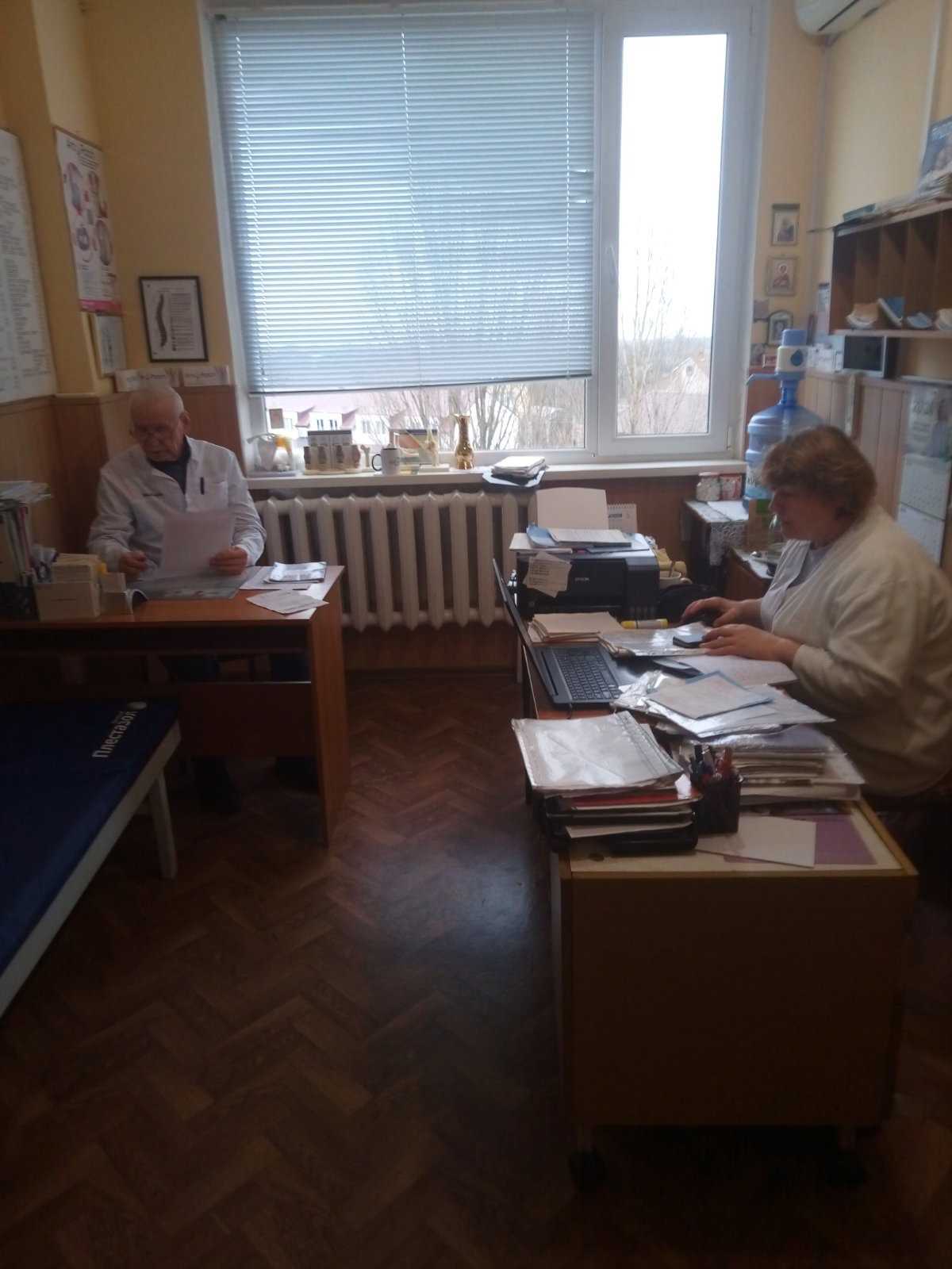 У поліклініці працює відділення профілактики, та харчова комісія, в яких лікарі проводять медичні огляди: